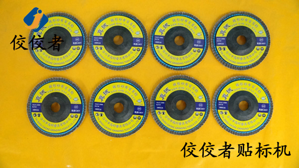 我們來一起欣賞下這臺全自動砂輪片貼標(biāo)機的貼標(biāo)樣品: