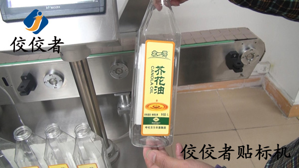 芥花油瓶貼標機貼標全過程講解