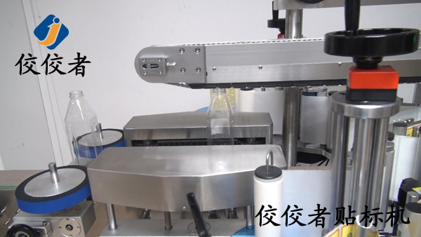 芥花油瓶貼標機使用方式非常簡單,首先先將兩卷標簽按照說明書上面的繞標指導方式安裝在料盤,設置好標簽電眼和測物電眼。然后調整設備的各個結構來匹配產品,這方面的操作都是通過觸摸屏來操作的,需要根據產品的外形來調整壓頂的高度、兩個標頭的相對位置。整個操作和調試對使用人員沒有文化或者其他方面的特殊要求,任何人都可以使用。設備調整好后放上產品就可以輕松、高效的將正背標貼在產品需要的位置。如下圖:
