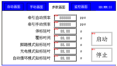• “停標延時”,設定從測標傳感器檢測出標完成一張后,延時停止出標的時間,任何模式有效,(0.0≤設置值≤32.767單位:秒);