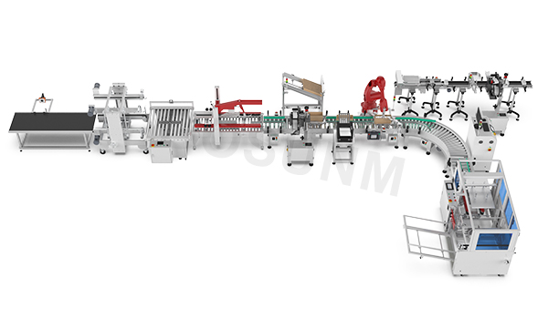 后段包裝生產線集自動開箱、自動封箱、自動打包等功能于一體。應用范圍廣、占地面積小、操作簡單、性能穩定。可大大減少勞動力,提高生產效率,降低生產成本。被各行各業所選用。同時還可根據各行業的包裝需要的不同而進行個性化設計和制造。接下來佼佼者后段包裝生產線廠家大家一起了解后段包裝生產線工作流程。