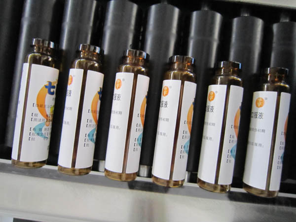 上圖是口服液貼標機貼標的樣品口服液。